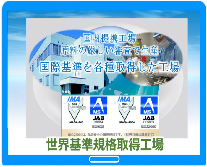 「麹爽快」の大麦麹醗酵酵素、乳酸菌、ギャバは植物由来です。提携工場は世界規格基準を取得しています。